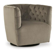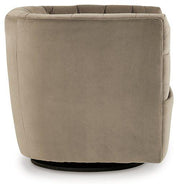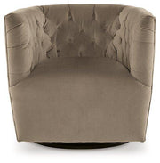 This swivel accent chair balances ultra-soft seating with a luxe appearance. Settle into the barrel back and indulge in its velvet fabric. Keep up with conversations with a sleek 360-degree swivel. This chair is created with both functionality and affordable luxury and in mind—how perfectly suited to your contemporary lifestyle.