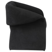 Upgrade the designer style of your living space with the ingenious silhouette of this modern accent armchair. Designed to impress, it features a classic stance with beautifully curled arms that capture attention without overwhelming. The lovely design is complemented with the organic texture of beautiful upholstery fabric, in a neutral hue that sets the tone for your space. The chair features foam cushioning with a streamlined look, perfectly enhancing its gentle curves and slopes. Add it to an existing seating group for eclectic flair, or choose a pair for a cozy ambiance. Key Features: • Charming folded arm design is artistic and modern on a contemporary accent chair • Fabric upholstery has a suede-like look and feel, offering organic texture and depth • Gently sloping armrests complement a low back and padded seat to create visual depth • Neutral upholstery color sets the tone in your inviting living area, den, or bedroom • Legs feature levelers to ensure that the chair doesn't rock or move unexpectedly