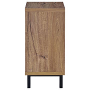 Elevate your entryway with this multifunctional shoe storage bench, elegantly merging form and function. Its engineered wood frame is finished with a durable natural oak colored wood-look laminate veneer, while a black faux leather cushion, foam-padded for comfort, tops the seating area. On one side, a cane-style metal panel door opens to reveal four tiers of shelving, neatly organizing your footwear. Supported by black powder-coated metal legs, this versatile piece delivers both style and practicality in one refined package. Key Features: • A multifunctional shoe storage bench in natural oak finish with integrated seating • Black faux leather upholstered cushion for plush comfort • Cane-style metal door panel concealing four tiers of shoe shelves • Engineered wood construction with a protective laminate veneer • Sturdy black powder-coated metal legs ensure stability and durability • Perfect for maintaining a tidy, welcoming entryway or hallway