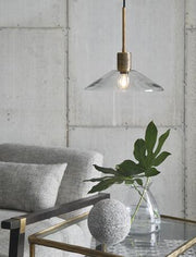 Product Details- Made of brass and metal with clear glass shade