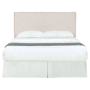 Inspire modern artistry in a contemporary bedroom space with a headboard that shines as a focal point. This updated headboard creates a mix of clean lines and tempting upgrades to transform a bedroom into a haven for relaxation. Versatile and timeless, flange details dress up the outer border, adding a dimensional effect. Textured sand finish fabric wraps over the headboard to deliver a light essence and a palette that accommodates a variety of options for matching case pieces, beds, and accessories. Constructed of pine wood.