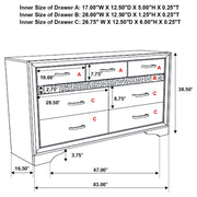 View full detailsInfuse your space with sophisticated grace. The chic design of this beautiful dresser lends a touch of elegance to any bedroom. Felt-lined drawers ...
