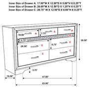 View full detailsInfuse your space with sophisticated grace. The chic design of this beautiful dresser lends a touch of elegance to any bedroom. Felt-lined drawers ...