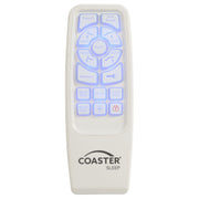 Revitalize yourself each and every night with this stunning multifunctional adjustable bed base with grey fabric trim and adjustable or removable legs. The bed base delivers the latest in modern technology with dual massage function on the head and foot of the bed, with three levels of intensity for optimal relaxation. The bed is equipped with a wireless remote that's backlit and gives full control of the height of the head and foot of the bed and includes presets for a most comfortable night's sleep. Each side of the bed is equipped with a dual USB port perfect for keeping bedside electronics charged and ready to use. You can even control the bed from your phone with Bluetooth connectivity and the Coaster app installed on your smart device. This premium adjustable bed base revolutionizes your bedroom into a relaxing multi-functional space and provides an abundance of features and customizable ergonomic positions to get great sleep and revitalize yourself.