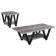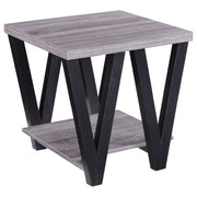 This modern coffee table combines bold design and practicality, ideal for contemporary living rooms. Featuring a rectangular grey wood-look top and lower shelf, it is crafted from engineered wood with a durable laminate veneer for lasting appeal. The black "V"-shaped legs add a dramatic design element while ensuring stable support. Its lower shelf offers additional space for storage or display, making this a functional and stylish focal point for any seating area.