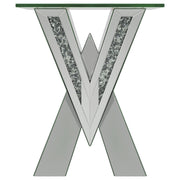 This mirrored coffee table set brings modern luxury to any living space. Featuring a coffee table and matching end table, both pieces boast bold V-shaped bases adorned with mirrored panels and glittering crystal accents. The coffee table’s rectangular glass top and the end table’s square top provide sleek, beveled tempered glass surfaces for added elegance. A perfect combination of glamour and functionality for contemporary interiors.