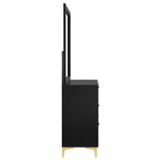 View full detailsSpace-saving and elegantly understated, this modern glam dresser offers plenty of space to store all wardrobe items. A boxy frame with a smooth bla...