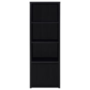 This modern entertainment center combines a sleek TV stand with two matching media towers, offering style and functionality. Finished in a bold black with a scratch-resistant eco-friendly laminate veneer, this unit provides ample storage and display options. The TV stand features cabinets, an open shelf with cable management, and a wide drawer, while each media tower includes open shelves and a bottom cabinet for organized storage. Perfect for creating a cohesive entertainment space in any living room.