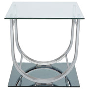 This modern square end table combines a clear tempered glass top with a sleek mirrored base, creating a visually striking design. The curved electroplated heavy gauge metal frame in a polished chrome finish adds elegance and stability. Crafted for durability and style, this versatile accent table is ideal for contemporary living spaces, offering functionality and refined aesthetics in equal measure. Key Features: • Modern square end table with a clear tempered glass top • Reflective tempered mirrored base adds visual appeal • Sturdy electroplated metal frame in polished chrome finish • Sleek curved design creates a stylish, modern look • High-quality materials ensure durability and long-term use • Perfect for adding function and style to any living space