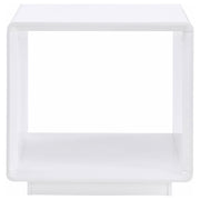 This matching end table continues the refined aesthetic with a white high gloss finish over engineered wood. Its compact form works perfectly as a side table or occasional table, while the open shelf adds convenient utility. As an accent table or utility table, it seamlessly aligns with the coffee table’s sleek presence, enhancing a cohesive, modern living room setting.