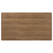 Accentuate the inviting style of your kitchen or dining room with a modern rectangular dining set. It offers fresh, contemporary flair with a walnut wood grain finish paired with beige upholstery on its chairs. The table features a trestle base and round post legs, offering casual ambiance for a welcoming home. Chairs are designed with wooden back and wedge details that add movement and character. Foam seat cushions are upholstered in beige fabric, offering neutral contrast and providing exceptional comfort and support for delicious meals. Key Features: • Casual style makes this modern five-piece dining room set the ideal choice for approachable ambiance • A walnut finish highlights the wood grain details of each chair and adds richness • Table with round post legs and a classic trestle base bring casual character and timeless style • Seats feature wedge details and foam cushions with beige fabric upholstery for excellent comfort • Crafted with walnut veneer paired with rubberwood and engineered wood for durability