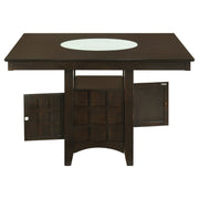 View full detailsThis counter height dining table brings striking form and smart utility to modern dining spaces. A frosted glass lazy Susan crowns the square table...